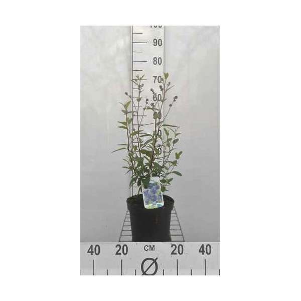 Ceanothus x delilianus 'Henri Défossé' ist ein buschiger Strauch mit kleinen ovalen grünen Blättern und einer Fülle von tief indigoblauen, federförmigen Blüten.