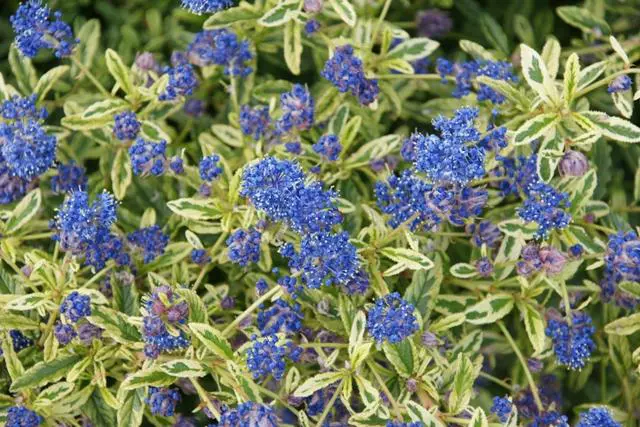 Ceanothus 'Lemon and Lime' ist ein langsam wachsender, aufrecht buschiger Strauch mit kleinen, glänzenden, ovalen Blättern. Die Blätter sind limettengrün mit breiten, unregelmäßigen goldgelben Rändern.