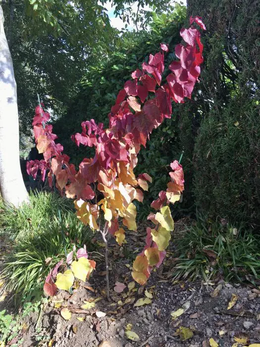 Cercis canadensis 'Eternal Flame' bildet einen sich ausbreitenden runden Strauch/kleinen Baum, oft mehrstämmig.