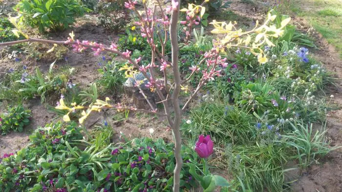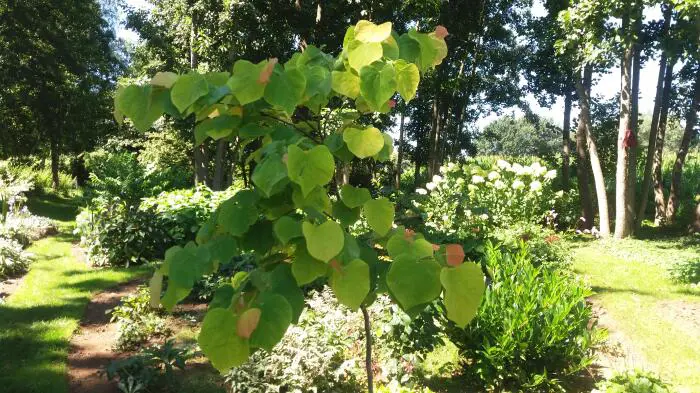 Cercis canadensis 'Die aufgehende Sonne' bildet einen kompakten, dichten runden Baum.