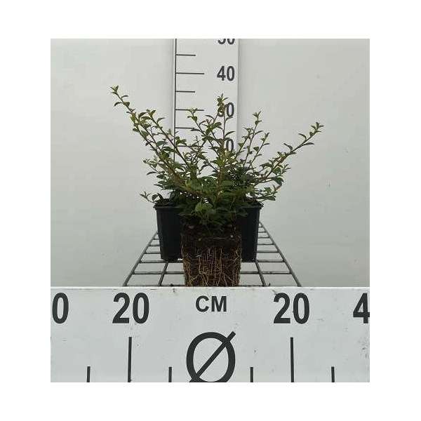 Es handelt sich um einen bodendeckenden Zwerg-Cotoneaster mit h50xbr250 cm mit kleinen, runden ovalen Blättern, die glänzend dunkelgrün sind. Im Herbst nehmen sie eine bronzegrünere Farbe an.