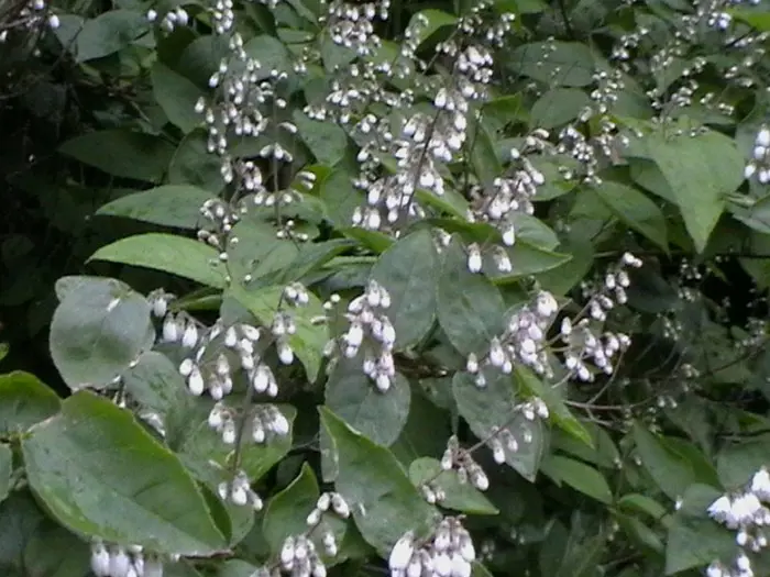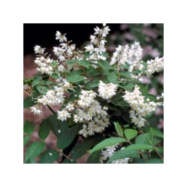 Blüht üppig mit aufrechten Büscheln aus reinweißen Blüten, leicht nach Honig duftend.