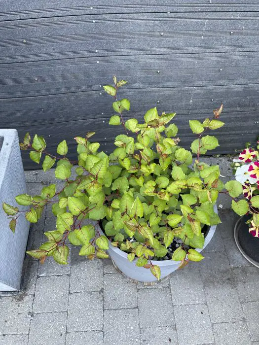 Die Blätter sind herzförmig, grün mit einer roten herbstlichen Farbe.