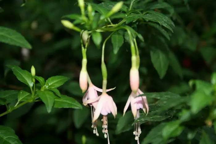 Blühen Sie mit schlanken, hängenden, muschelrosa Blüten.