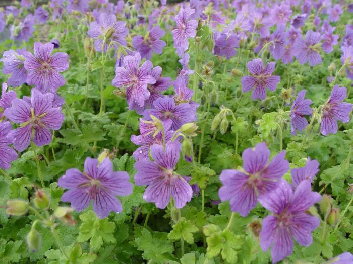 Geranium 'Alan Mayes' ist ein ausgezeichneter Bodendecker mit sanft behaarten, gelappten Blättern, die im Herbst rot werden.