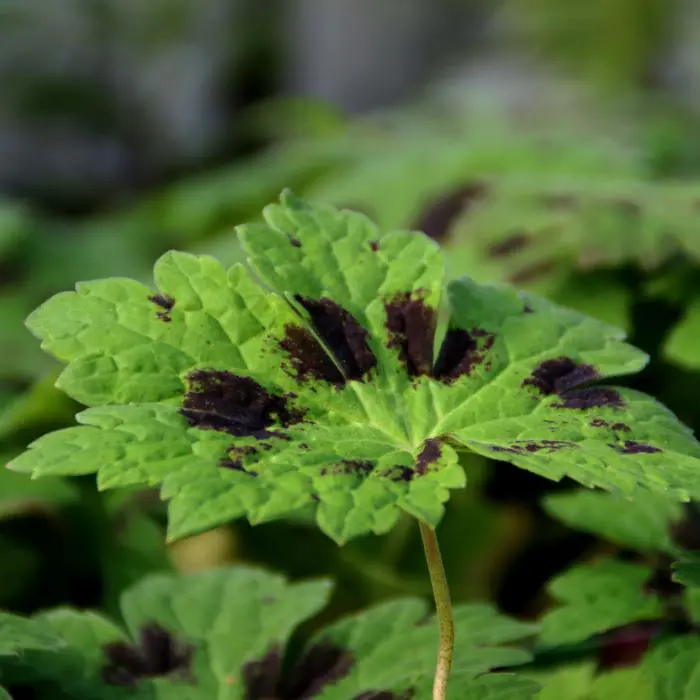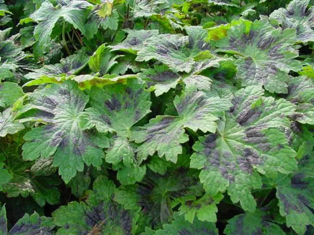 Das grüne Laub ist besonders attraktiv mit seiner auffälligen purpurbraunen Markierung in der Mitte.