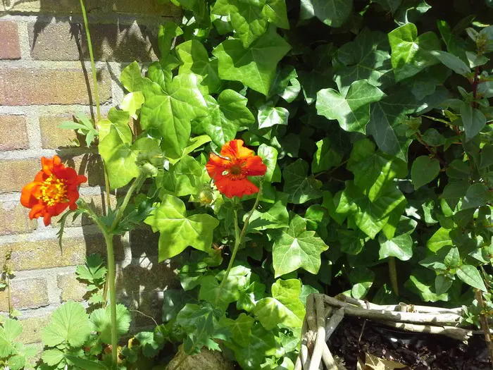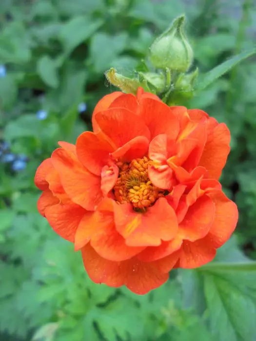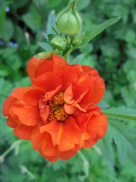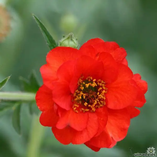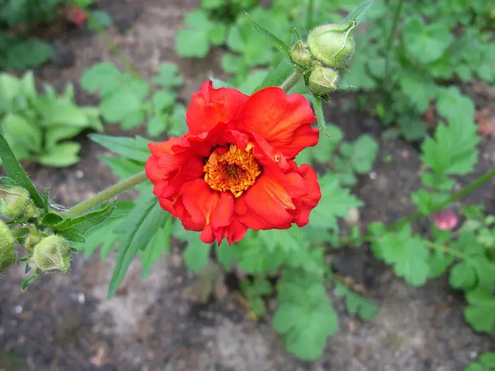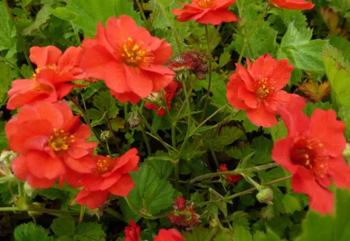 Geum chiloense 'Mrs Bradshaw' blüht mit halb-doppelten, scharlachroten Blüten.