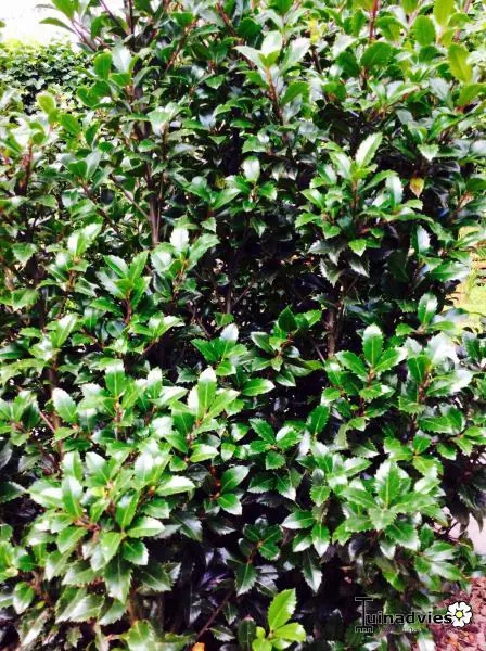 Blüht im Frühling mit weißen Blüten. Es handelt sich um ein männliches Stechpalmen, das daher keine Beeren produziert, aber ein guter Bestäuber für das weibliche Ilex x meserveae 'Heckenfee'.
