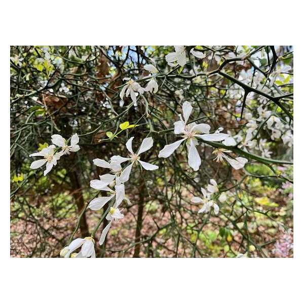 Citrus trifoliata ist ein kräftig wachsender Strauch mit dornigen Ästen.