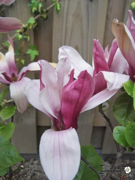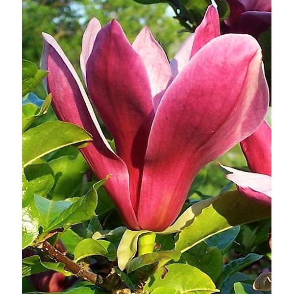 Blüht mit dunkelviolett-roten, tulpenförmigen Blüten, innen hellviolett, manchmal gefolgt von Früchten. Sie blühen in einem jüngeren Alter als die meisten anderen Magnolien.