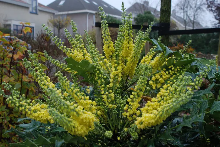 Im Winter blühen sie mit süß duftenden gelben Blüten. M. japonica ist der am stärksten duftende Mahagonistrauch und kann aus angemessener Entfernung gerochen werden.