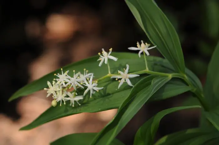 Maianthemum stellatum ist in Nordamerika heimisch. Es handelt sich um eine anmutige, überhängende Pflanze mit sternförmigen weißen Blüten.