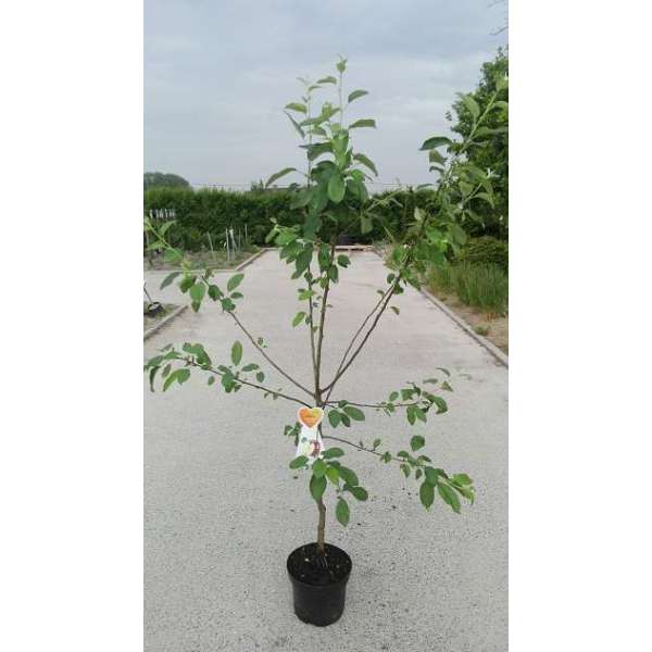 Malus domestica 'Gloster' bildet einen Baum mit kräftigem und buschigem Wachstum, der regelmäßig ausgedünnt werden muss. Im Frühling blüht er sehr üppig mit duftenden hellrosa Blüten, gefolgt von grünlich-gelb/dunkelroten Äpfeln. Das cremige weiße Fruchtfleisch ist saftig mit einem weichen, süß-sauren Geschmack.