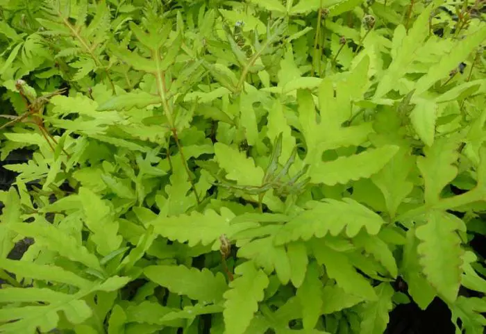Ein schnell wachsender Farn für große Gärten, verbreitet sich durch ein kriechendes Rhizom.