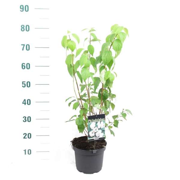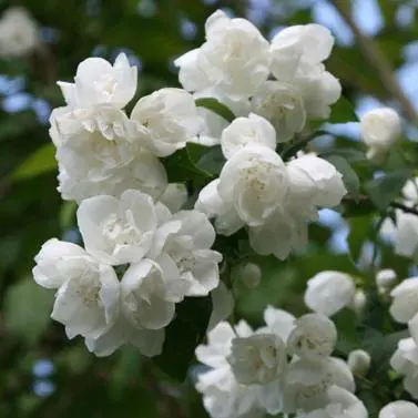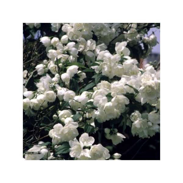 Philadelphus 'Virginal' blüht mit cremeweißen, halbdoppelten Blüten und duftet köstlich.