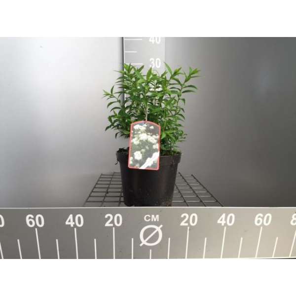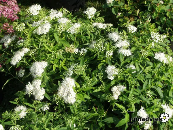 Hat eine recht reiche Blüte mit weißen, runden Dolden.