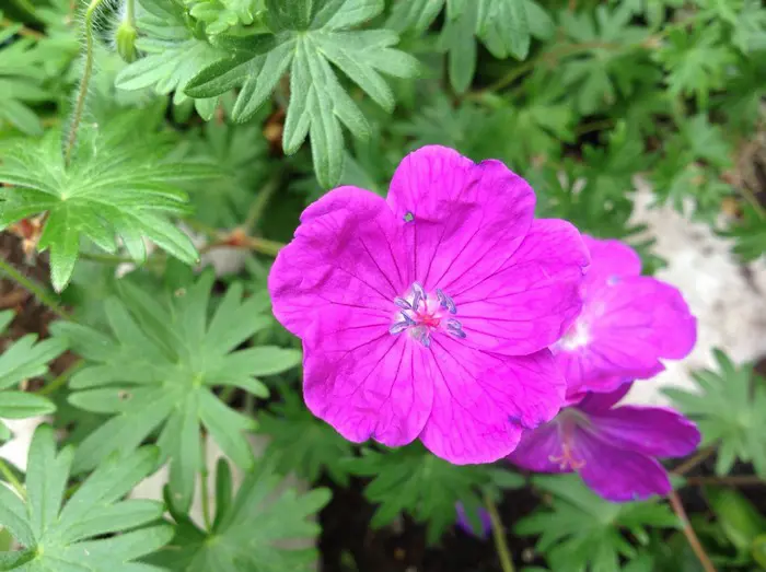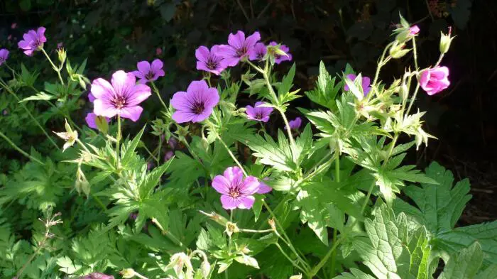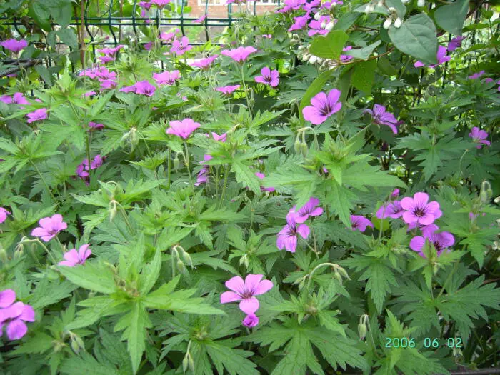 Geranium 'Patricia' ist ein buschiges, leicht kriechender Bodendecker mit großen, dunkelgrünen, tief eingeschnittenen Blättern, die im Herbst wunderschön rot werden.