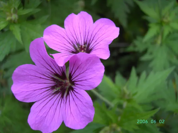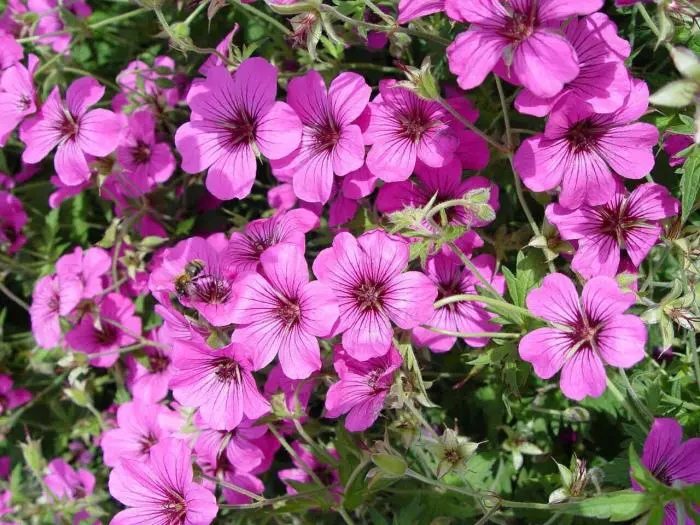 Es handelt sich um eine langblühende Sorte mit magentarosa Blüten und schwarzem Zentrum.