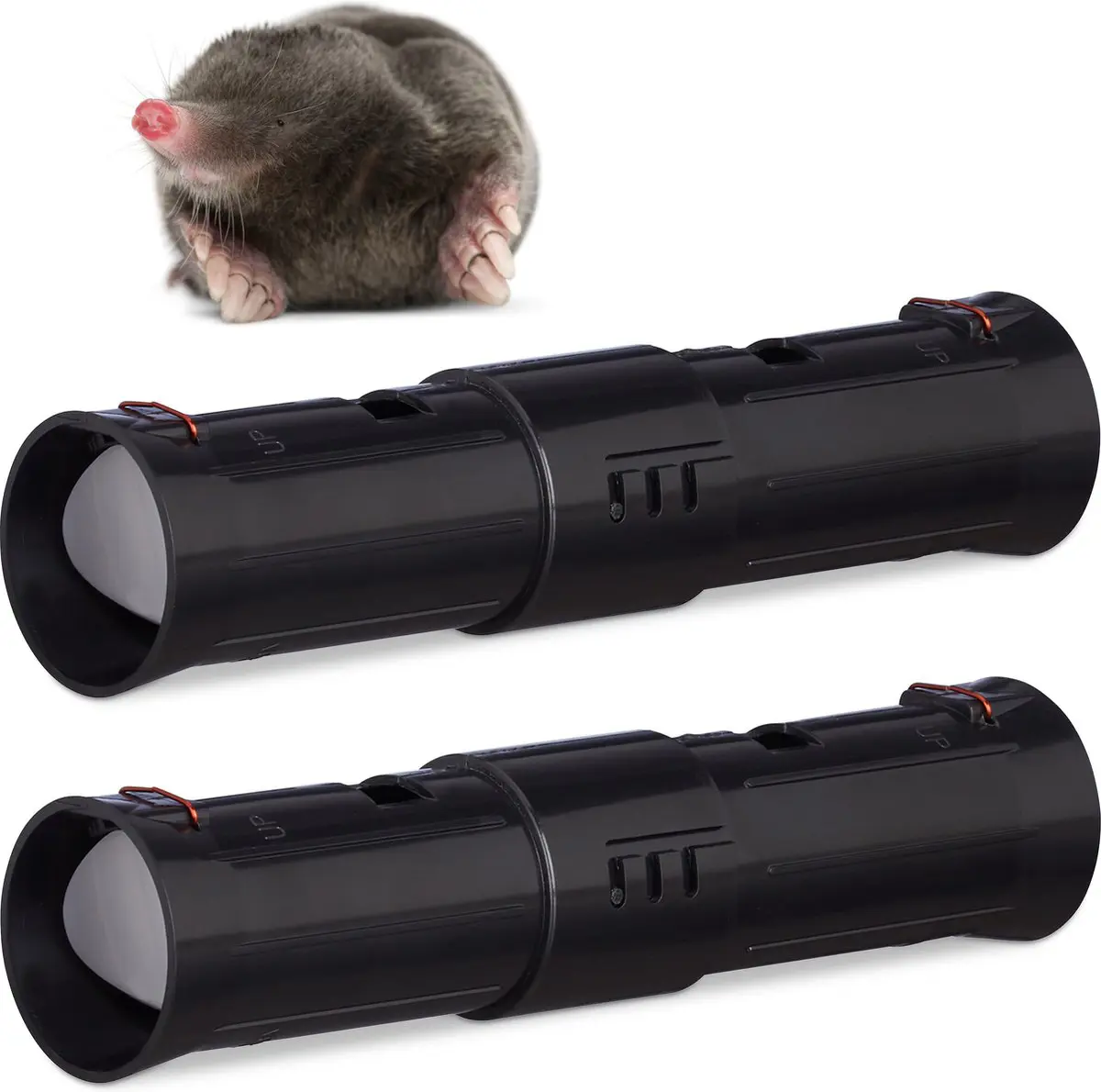 Diese Maulwurffalle funktioniert, indem sie das Maulwurf in das Maulwurfrohr lässt. Dies kann auf beiden Seiten geschehen, wobei ein Eingang mit einer Schwingklappe ausgestattet ist, die nur nach innen geklappt wird. Zum Beispiel kann ein Maulwurf hineinkriechen, aber sobald er drinnen ist, können die Türen nicht mehr aufgestoßen werden und der Maulwurf ist gefangen. So fangst du Maulwürfe, ohne sie zu töten.