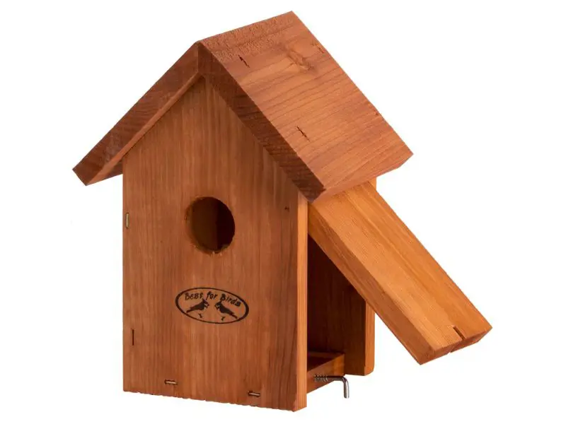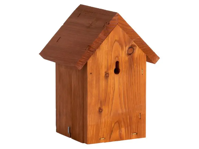 Der Nistkasten ist mit einer Tür an der Seite ausgestattet, um den Nistkasten leicht zu reinigen oder zu kontrollieren.