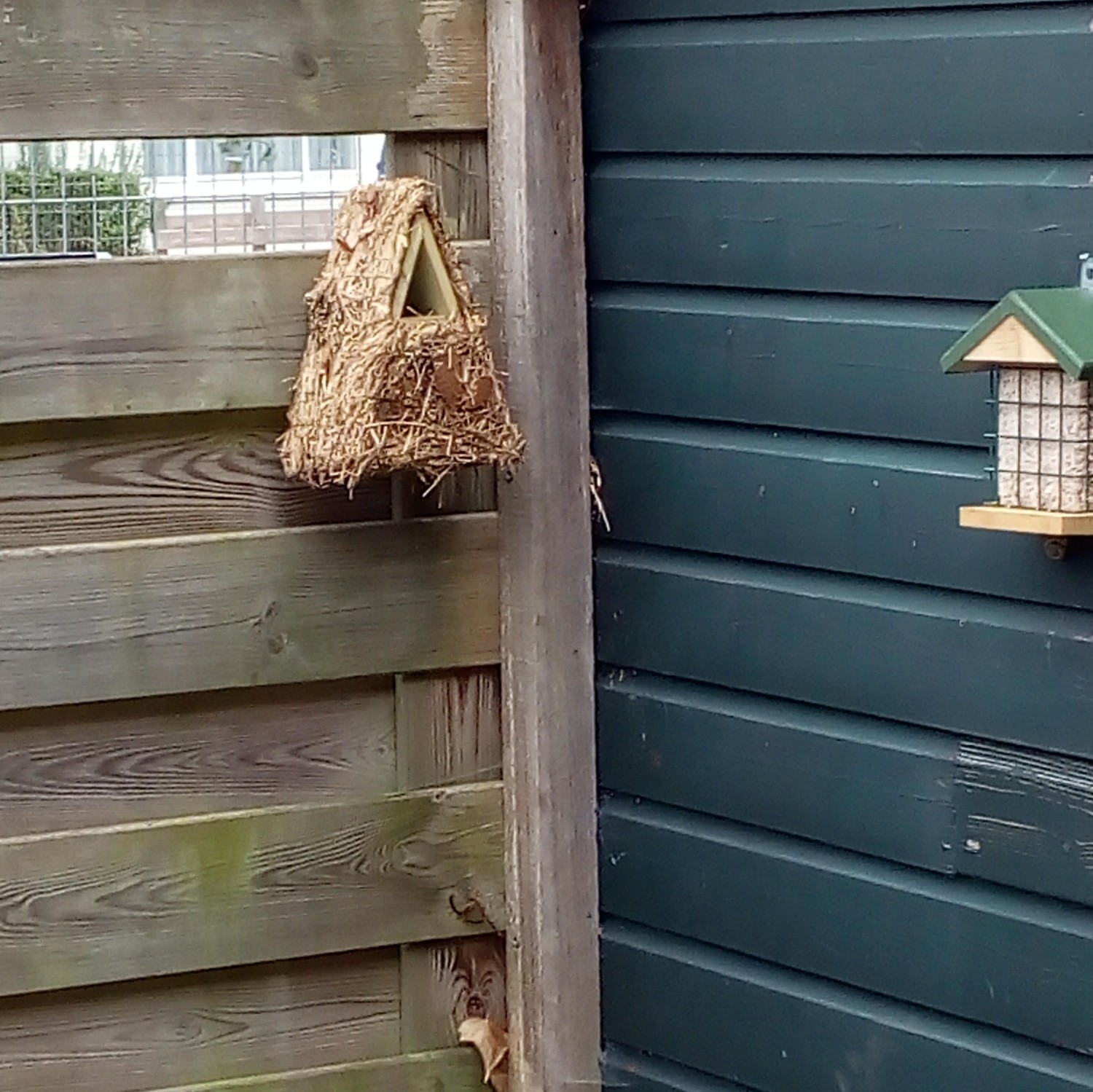 Der Zaunkönig ist ein kleiner Vogel, der ein gut verstecktes und getarntes Nest mag. Deshalb ist dieser Nistkasten mit Zweigen, Moos und Gräsern bedeckt. Dadurch fügt er sich vollständig in seine Umgebung ein und ist nicht bemerkbar.