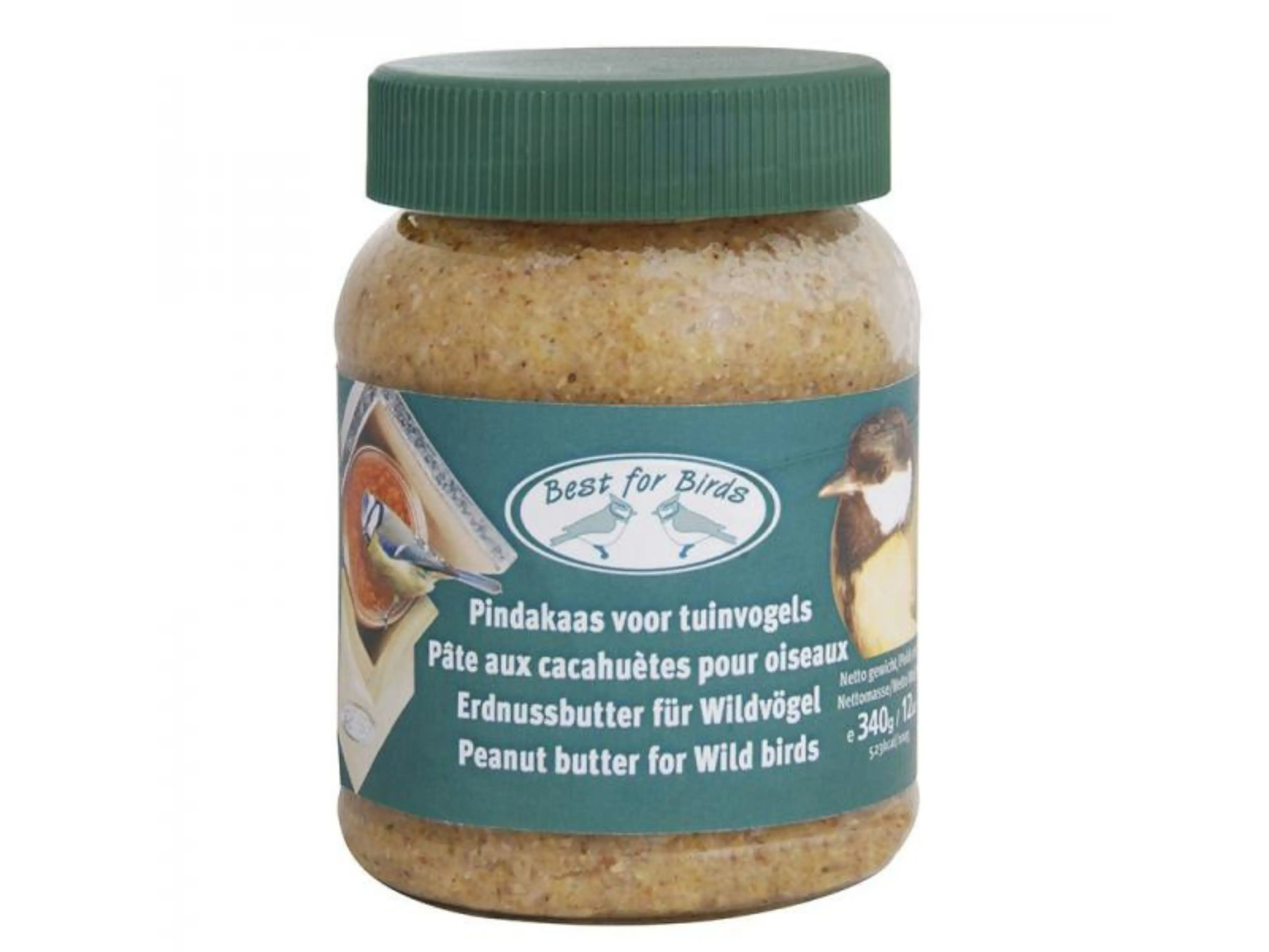 Ein Glas ungesalzene Erdnussbutter mit Stücken Nuss, speziell für unsere Gartenvögel. Erdnussbutter, die für den menschlichen Verzehr hergestellt wurde, enthält zu viel Salz und kann für die Vögel in Ihrem Garten schädlich sein. Great und Blue, unter anderem, mögen Erdnussbutter.