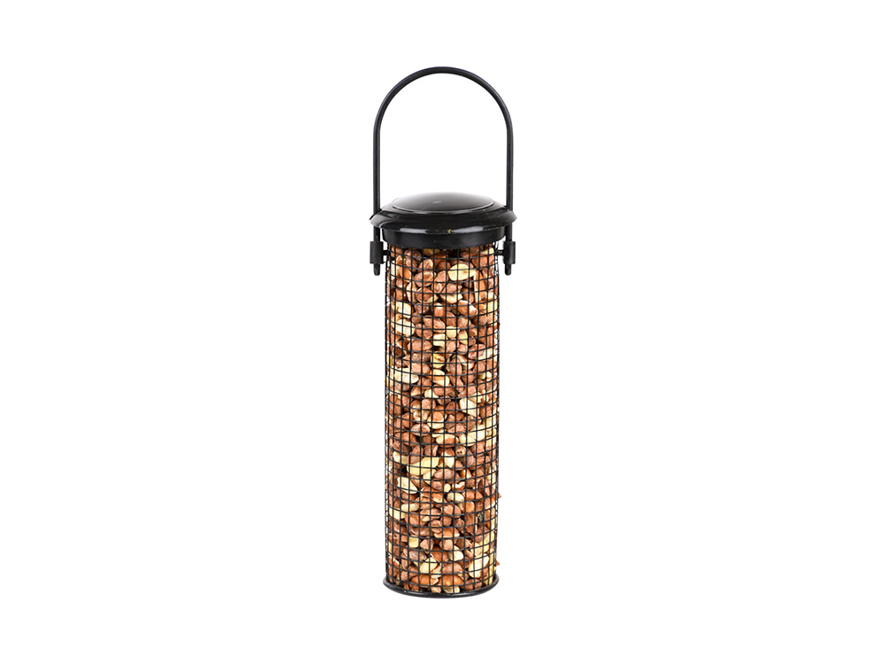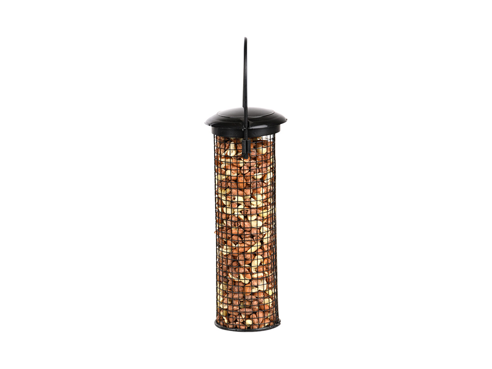 Mit dem bereitgestellten Hängerring kann man das Erdnusssilo problemlos in einen Baum, einen Busch oder an einen Futterhaken hängen. Das Auffüllen und Reinigen kann dank des abnehmbaren Deckels schnell erfolgen.