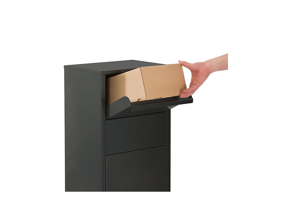 Hannover ist ein praktischer stehender Paketbriefkasten mit einer großen Öffnung (ca. 19 cm x 34 cm) sowie Rücklaufklappe und Klappenschloss.