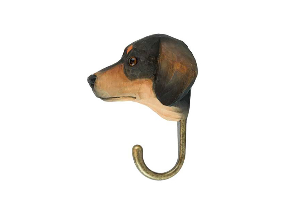 Dieser wunderschöne Haken in Form eines Dackels ist eine einzigartige Dekoration und erhellt sofort jeden Raum im Haus. Auch schön, sie mit anderen Hunden aus der Serie zu kombinieren.