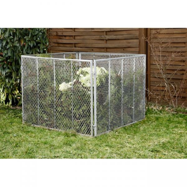 Dieser Kompostkäfig besteht aus vier gleich großen Teilen, die leicht mit Haken und Ösen zusammengebaut werden können. Die Teile bestehen aus stabilen, verzinkten Metallgittern von jeweils 100 x 100 x 80 cm.