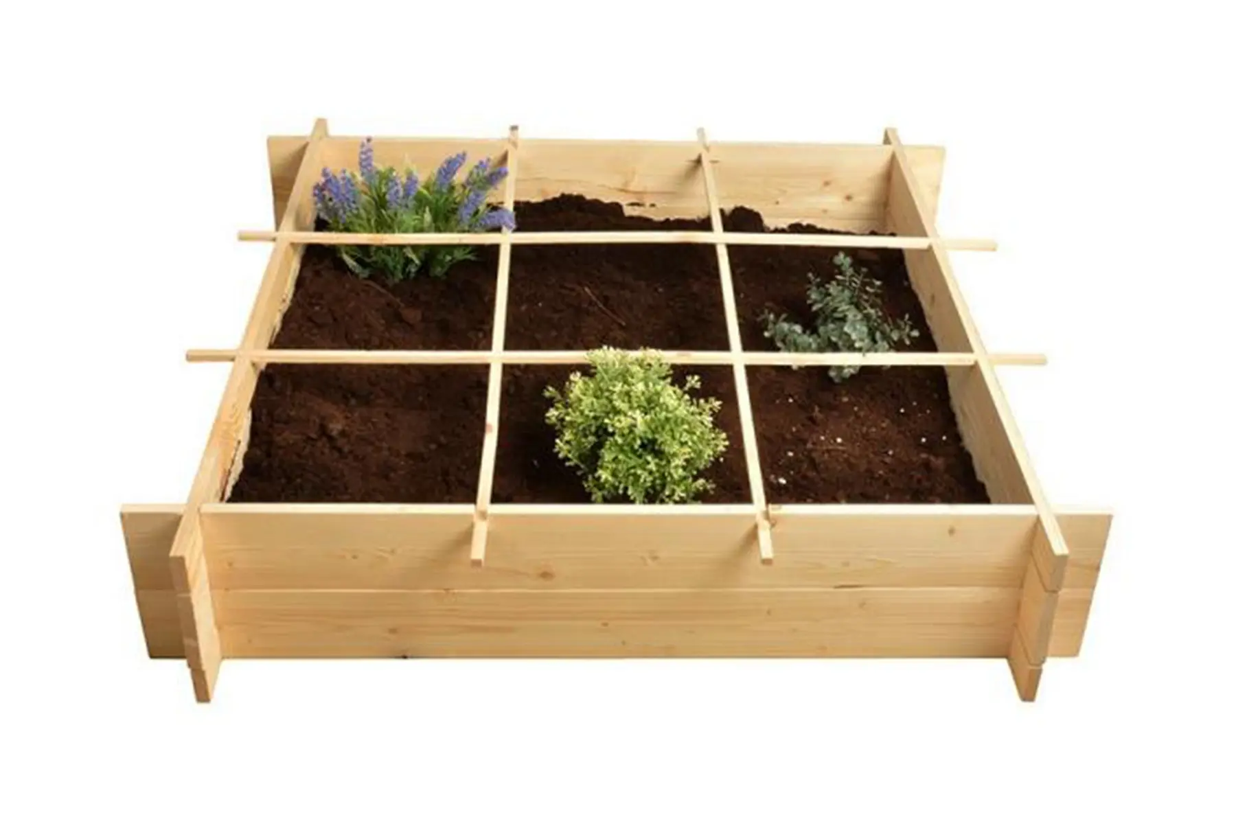 Von nun an bauen Sie Ihr eigenes Gemüse, Kräuter oder Blumen in diesem praktischen Quadratmeter-Garten von Esschert Design an. Die hölzerne Gemüsegartenbox besteht aus 9 Fächern, die einzeln gefüllt werden können. Im Inneren ist ein Wurzeltuch ausgestattet, das sicherstellt, dass der Boden im Quadratmeter-Garten bleibt.