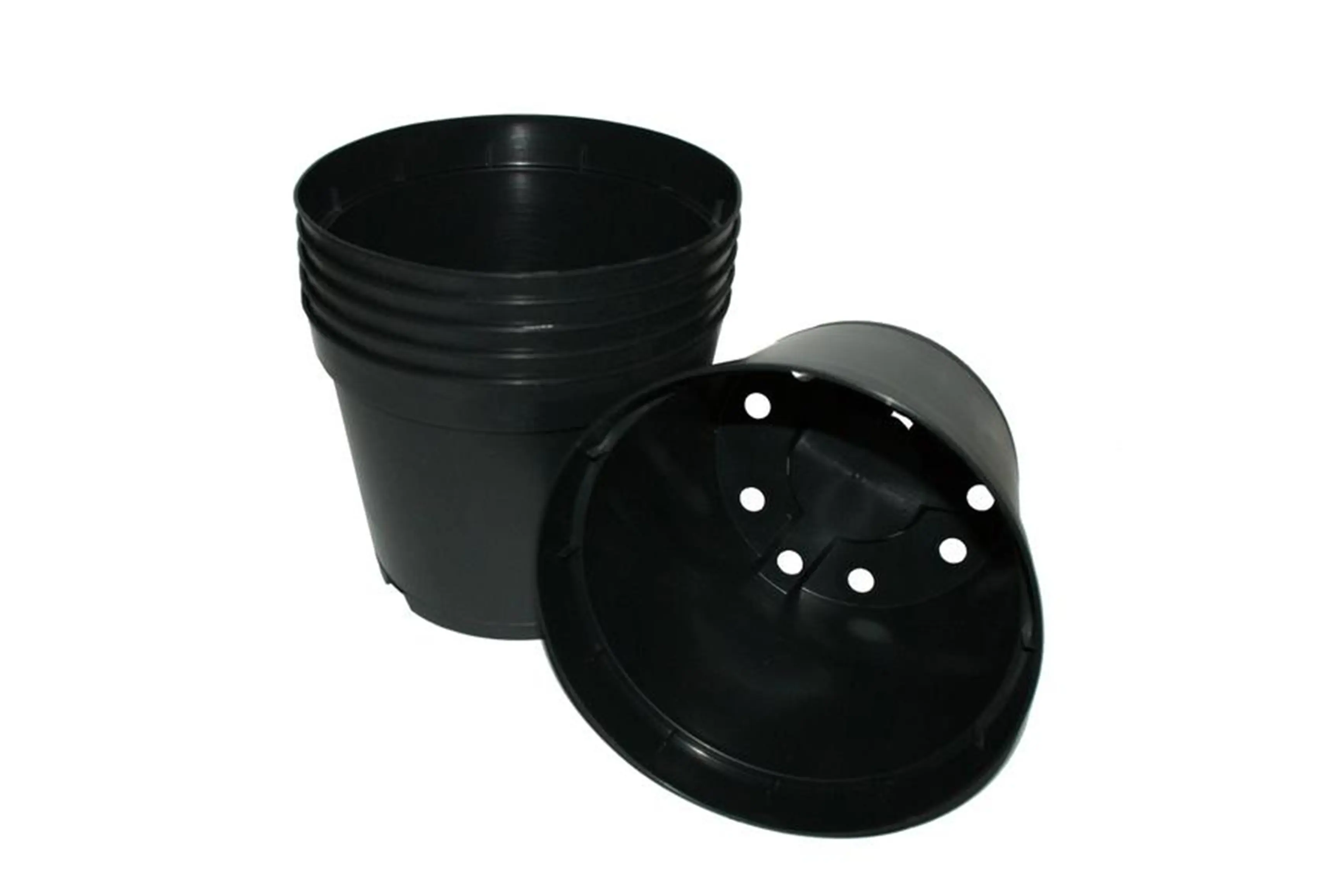 Ein Satz runder Töpfe mit erstklassigem Boden für optimale Entwässerung und Belüftung, außerdem zur Bewässerung mit Bewässerungsmatten. Diese hochwertigen Plastik-Pflanzentöpfe können mehrfach wiederverwendet werden.