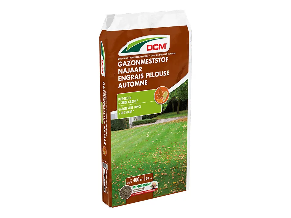 DCM-Rasendünger für den Herbst. Der perfekte Dünger, um Ihren Rasen gesund durch den Winter zu führen. Dank des zusätzlichen Kaliums wird dein Gras viel stärker. Insbesondere im Winter rüstet er sich gegen Frost und Eindringlinge, sodass keine kahlen Flecken entstehen und kein Platz für Moos bleibt.