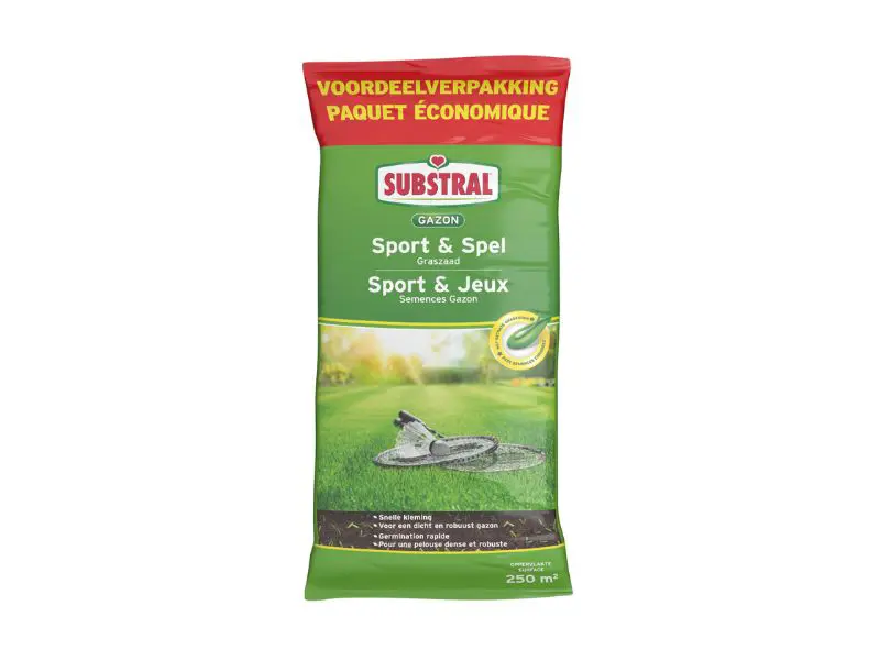 Substral Sport & Game Grass Seed eignet sich für intensiv genutzte Rasenflächen. Von Sport, Spiel und Schatten von Rasenflächen bis hin zu Zierrasenflächen. Die Grasmischung besteht aus professionellen Gräsern für ein überlegenes Ergebnis. Ideal für intensive Nutzung. Keimt und entwickelt sich sehr schnell. Das beschichtete Grasgut sorgt für besseren Kontakt mit dem Boden. Die Beschichtung enthält außerdem Nährstoffe, die die Entwicklung der Samen fördern.