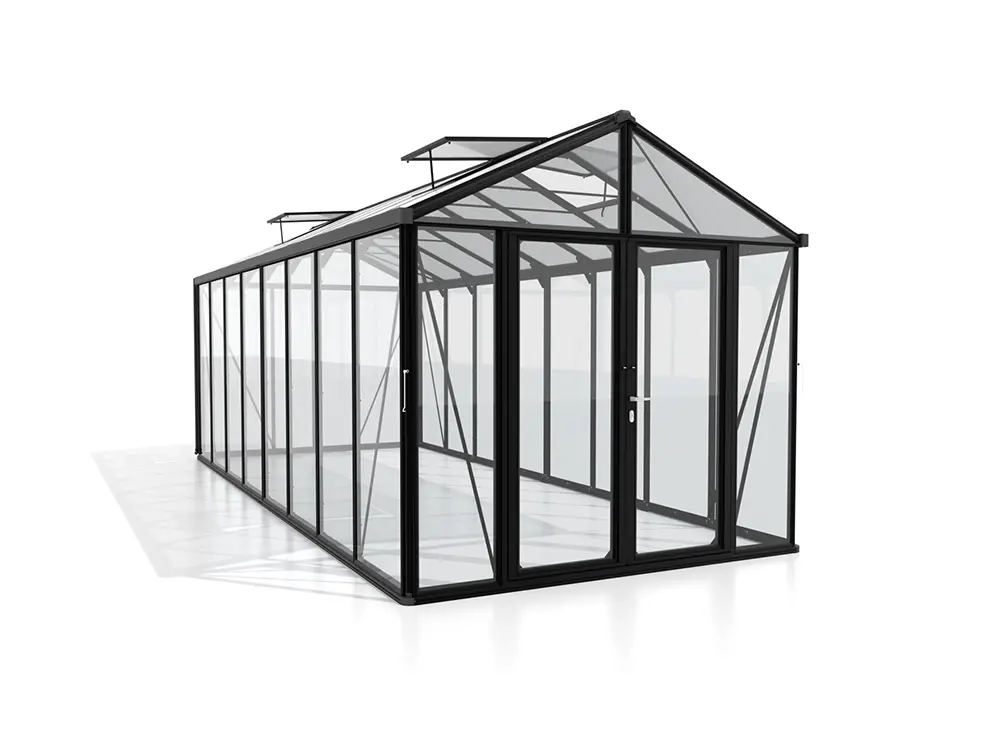 - Verglasung: 3 mm Sicherheitsglas – 10 mm Polycarbonat für das Dach