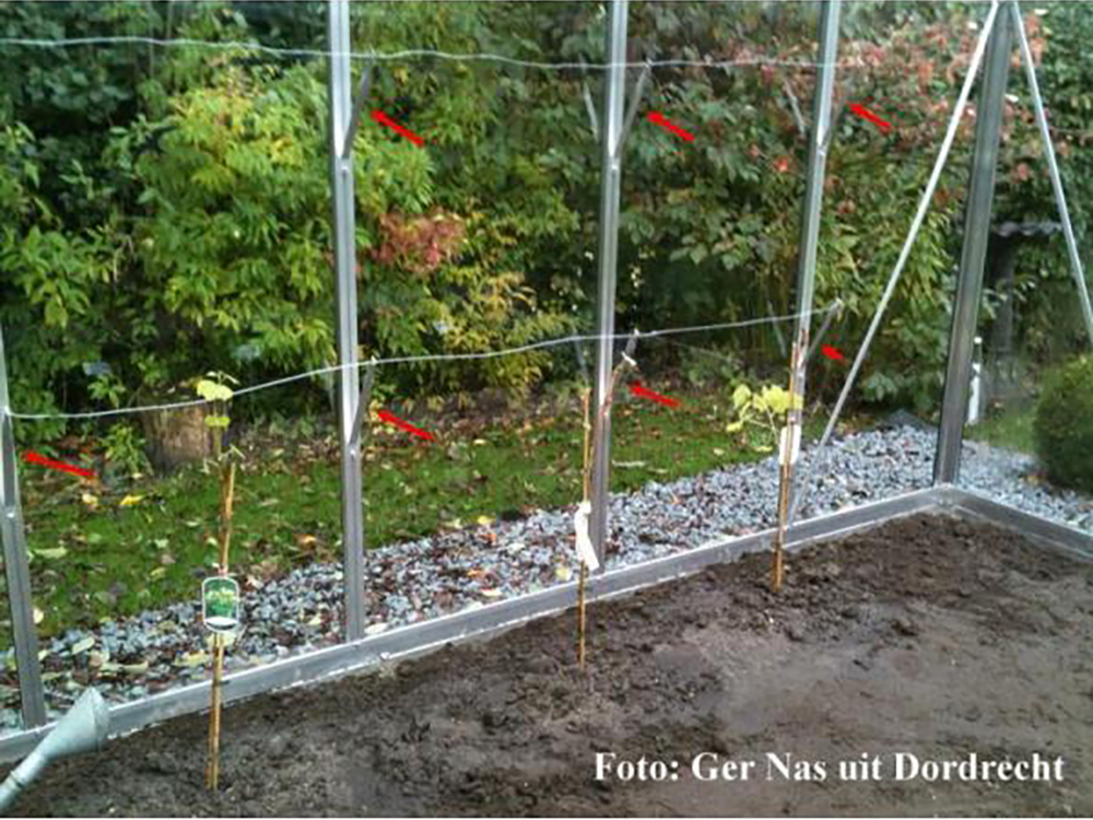 • Vermeiden Sie den Kontakt zwischen den Blättern der Weinrebe und dem Glas des Gewächshauses.