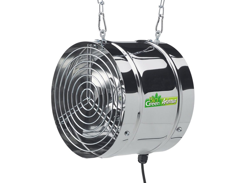 Dieser sehr leise Ventilator 'Arizona' sorgt für maximale Luftzirkulation und Belüftung im Wintergarten, Gewächshaus und Veranda,... Die mitgelieferten hängenden Ketten machen den Lüfter leicht aufzuhängen und sparen dir Platz.