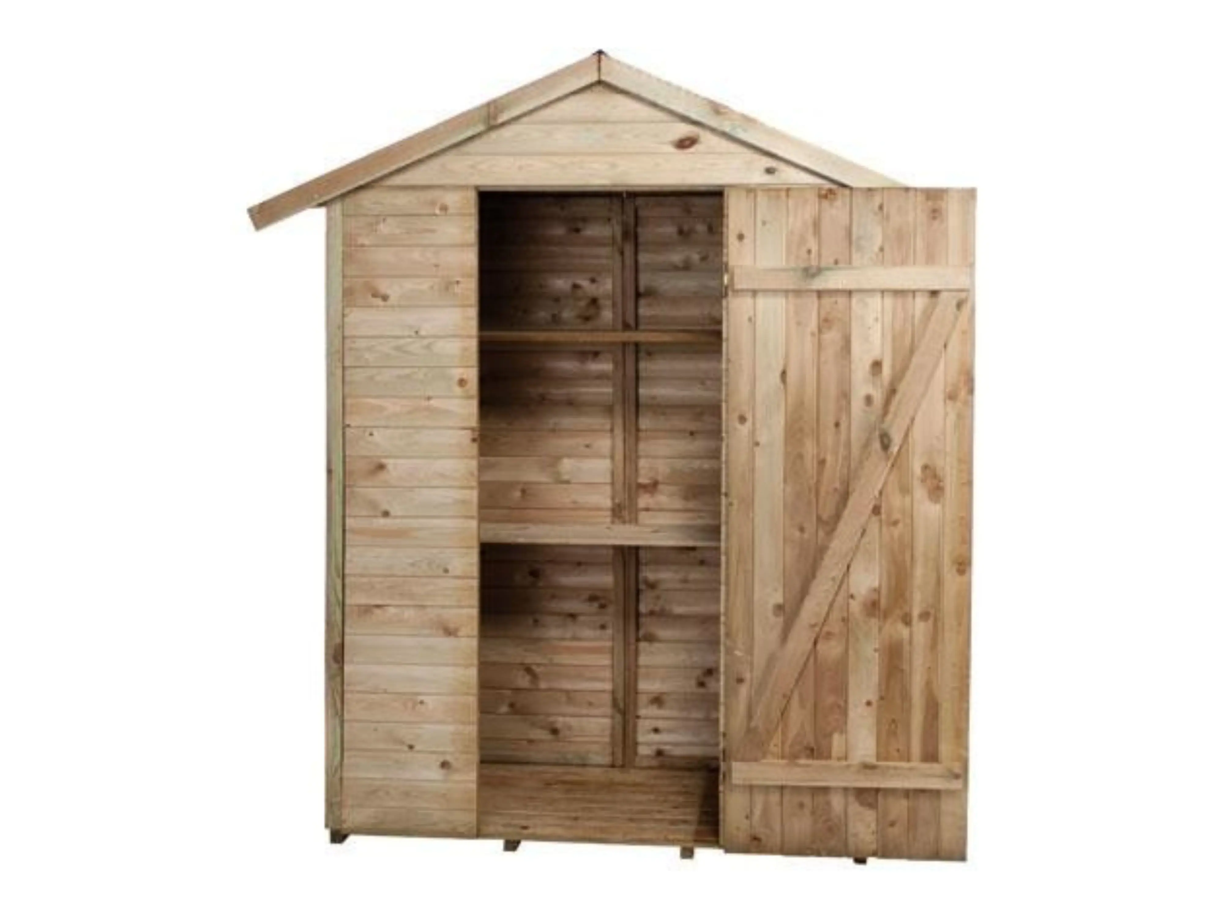 Gartenschuppen Leo hat eine einzige Tür und ist druckimprägniert für eine längere Lebensdauer.