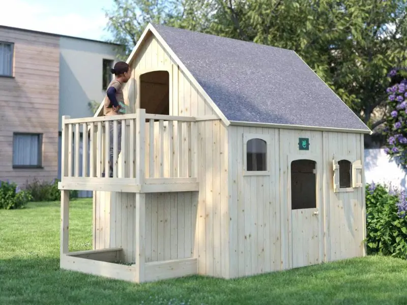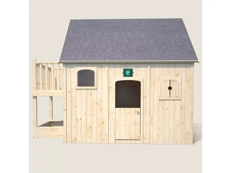Das Duplex Playhouse ist ein Holzhaus, das einen sicheren und anregenden Spielraum für Kinder im Alter von 3 bis 12 Jahren bietet. Mit seinen zwei Stockwerken, dem Balkon und dem eingebauten Sandkasten verwandelt dieses Spielhaus den Garten in eine echte Abenteuer- und Fantasielandschaft. Sein robustes Design und das ordentliche Finish machen es zur idealen Wahl für Familien, die Sicherheit, Funktionalität und Ästhetik in einem langlebigen Außenspielhaus verbinden möchten.