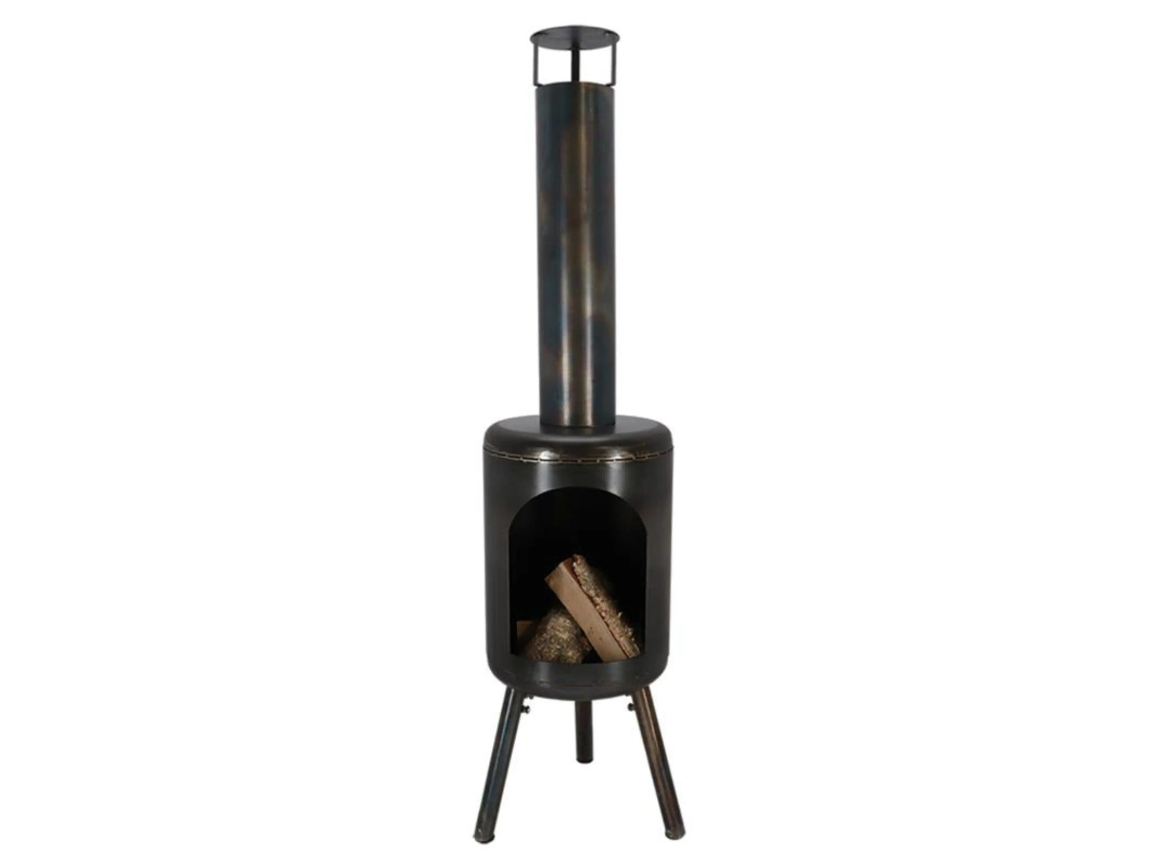 Dieser Terrassenofen besteht aus robustem Stahl und erhält eine schöne natürliche Patina, wenn er den Elementen und dem Feuer ausgesetzt ist. Dies verleiht dem Kamin ein charakteristisches Aussehen, das mit der Zeit nur noch schöner wird.