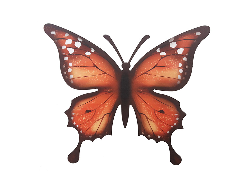 Verwandeln Sie Ihren Garten mit dieser farbenfrohen Dekoration in ein Schmetterlingsparadies . Der Schmetterling flattert durch deinen Garten und landet an der Wand, wo er seine Flügel in der Sonne wärmt.