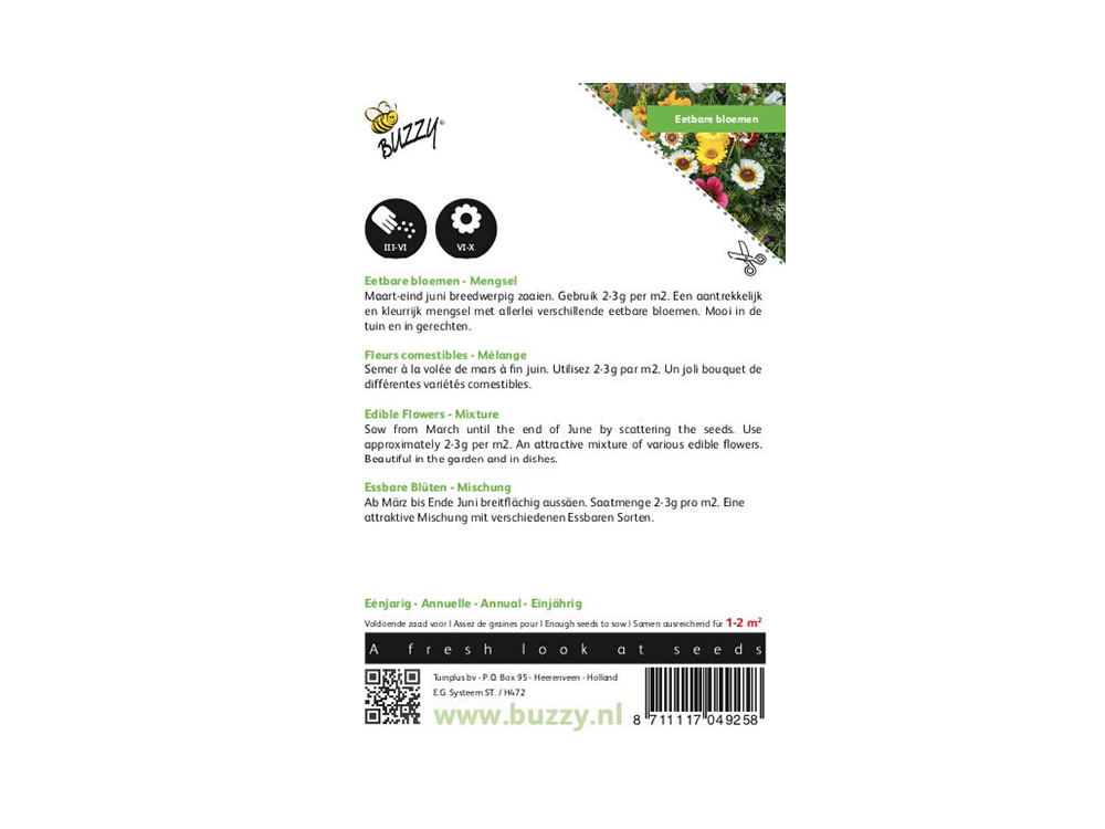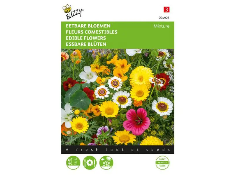 Eine attraktive Mischung mit bunten Blumen , die den Garten und Ihren Teller erhellen! Die einjährigen Blüten wachsen zwischen 40 und 80 cm hoch und blühen über einen langen Zeitraum. Die Blütenmischung kann man zwischen März und Ende Juni aussäen.