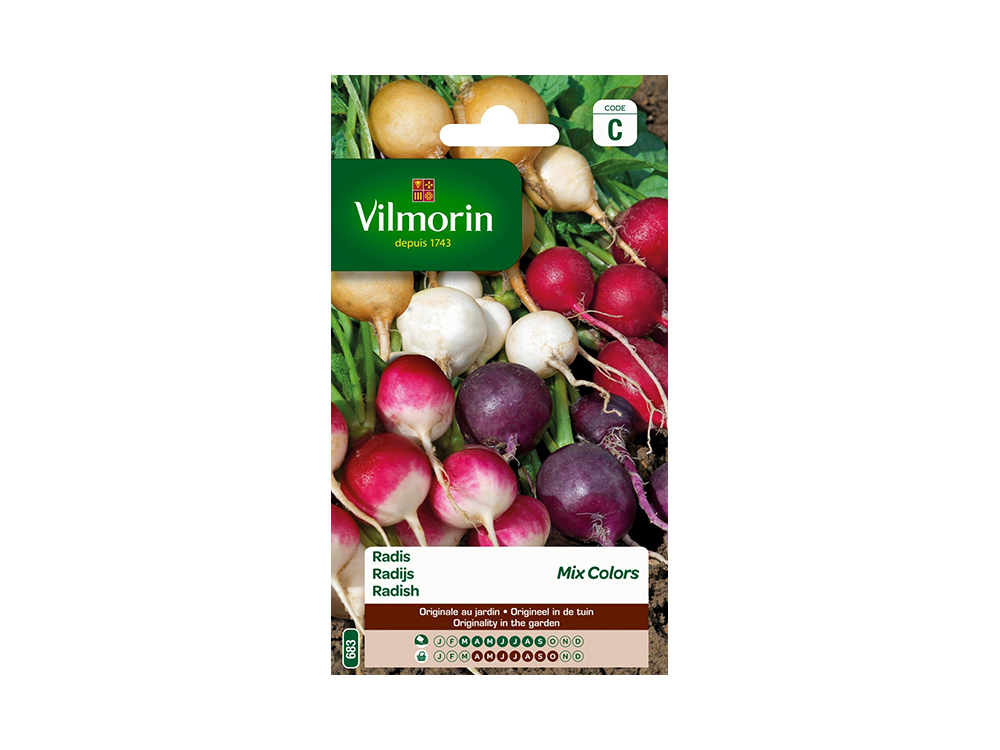 Diese Mischung verschiedener Rundradieschensorten ist im Garten sehr originell. Ideal, um Gerichte mit verschiedenen Farben von Radieschen zu präsentieren.