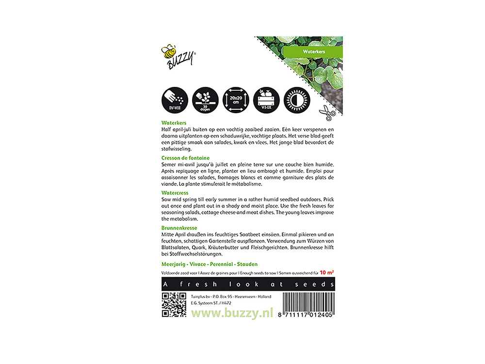 Brunnenkresse wird oft roh in Salaten verwendet und hat einen pfeffrigen Geschmack. Der Anbau kann von April bis Juli an einem feuchten, schattigen Ort stattfinden, vorzugsweise in einem nassen Saatbett.