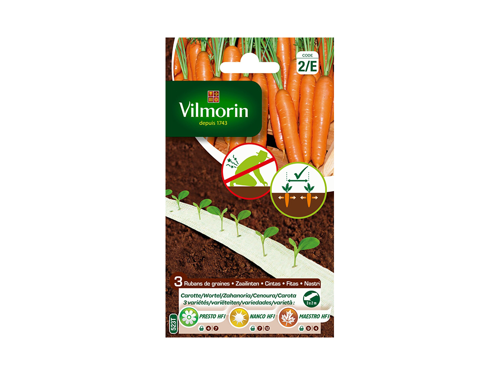 Ein Karottensamenband mit Karotten das ganze Jahr über mit diesen drei Sorten , die nacheinander ausgesät werden.