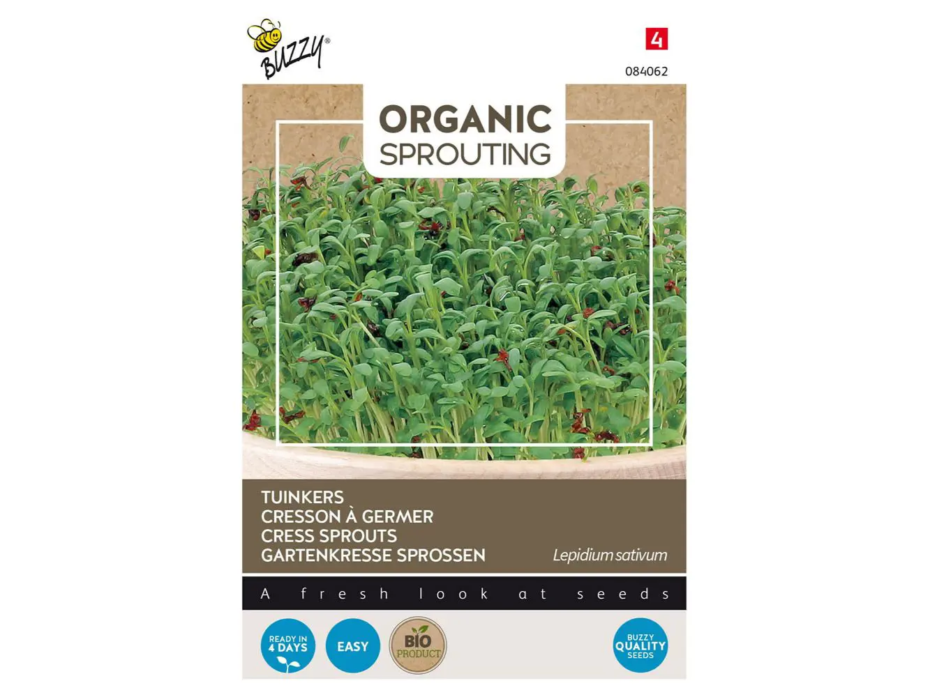 Kresse ist in der Küche besonders beliebt wegen ihres scharfen Geschmacks. Dieses Sprossengemüse enthält Senföl und schmeckt köstlich im Salat, aber es schmeckt auch sehr gut zu Fisch. Das Wachstum kann leicht erfolgen, indem man eine dünne Samenschicht auf das Sägitter eines Keimturms oder unparfümierte Watte streut. Halten Sie die Kressesamen feucht und nach ein paar Tagen sind die Keimungen verzehrbar.
