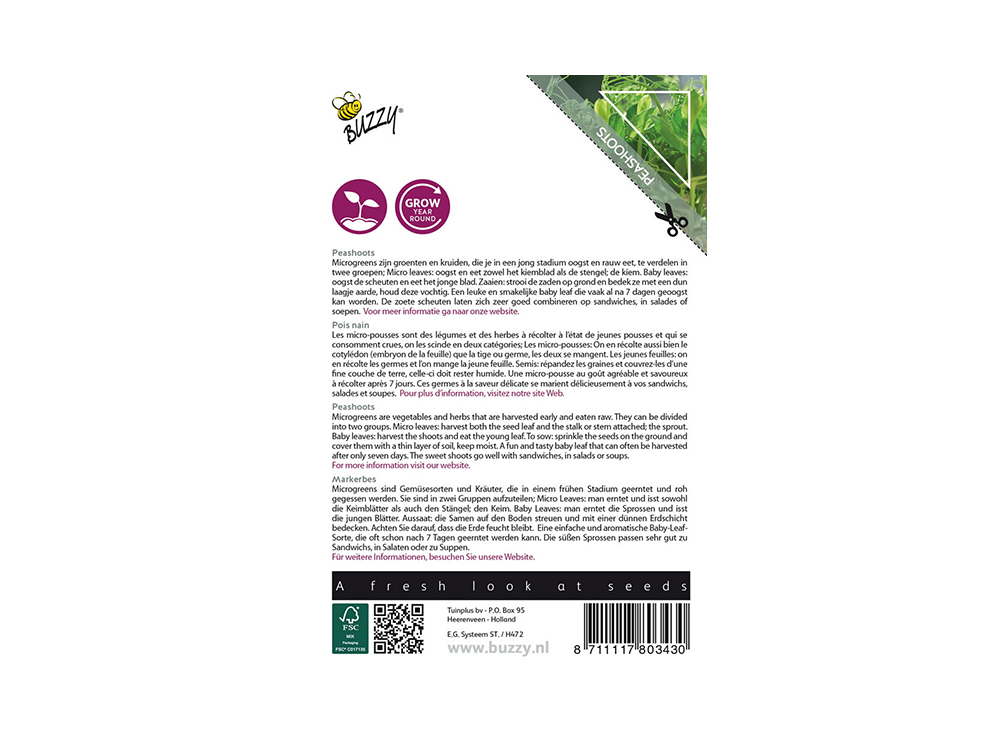 Ein lustiges und leckeres Babyblatt, das oft nach 7 Tagen geerntet werden kann. Die süßen Triebe kombinieren sich sehr gut zu Sandwiches, in Salaten oder Suppen. Es ist eine gut schmeckende, äußerst produktive Bohne.