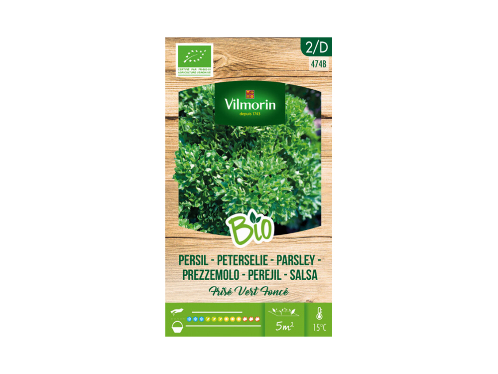 Petersilie Frisé Vert Foncé ist eine schnell wachsende Sorte mit gewellten Blättern. Die Bio-Samen von Vilmorin sind von hoher Qualität und sorgen für ein erfolgreiches Wachstum in jeder Bodenart. Außerdem lässt sich es einfach in Töpfen und Töpfen anbauen.