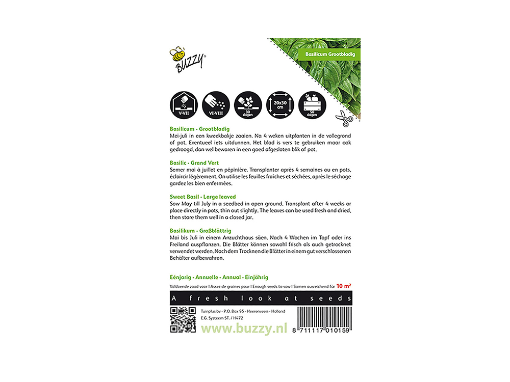 Basilikum, ursprünglich aus der Mittelmeerregion, ist eine einjährige Pflanze mit dekorativen Blättern. Der Name Ocimum basilicum stammt vom griechischen Wort basileus, das "König" bedeutet. Dieses aromatische Kraut ist in der mediterranen und asiatischen Küche unverzichtbar. Es verleiht Pastasaucen, Pesto, Fleisch- und Fischgerichten, Salaten Geschmack und ist auch nützlich zum Einlegen von Gurken. Basilikum regt den Appetit an und kann frisch, getrocknet (mit etwas Geschmacksverlust) oder gefroren verwendet werden.