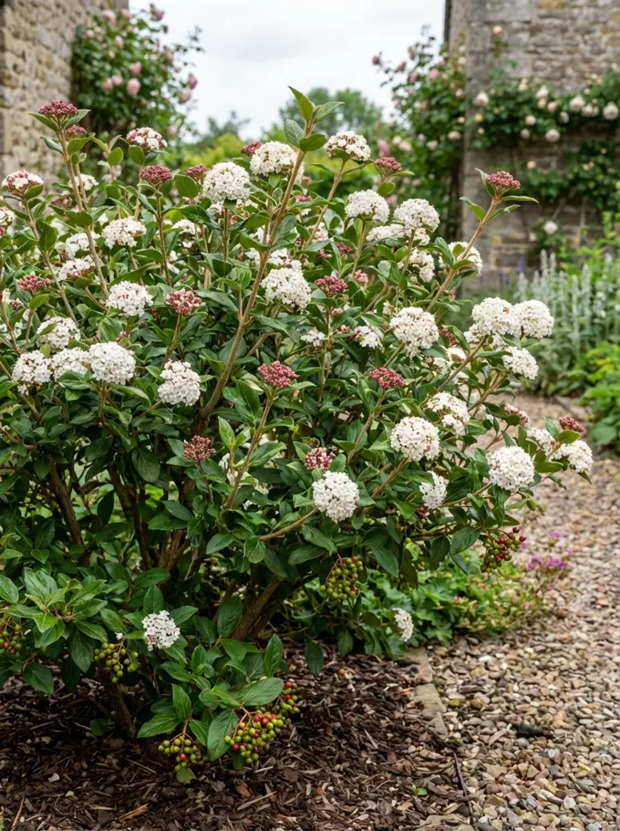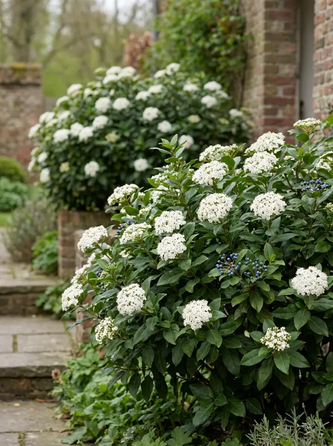Der Sommer neigt sich dem Ende zu, aber das bedeutet nicht, dass der Garten farblos wird. Im ... anmutiges Erscheinungsbild verleihen. Viburnum tinus Viburnum tinus beginnt jedes Jahr früher zu blühen
